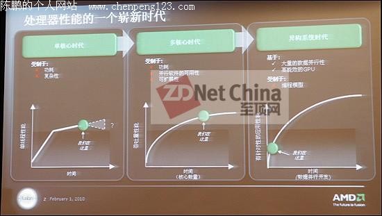 在AMD看来,CPU性能的发展正在进入第三个阶段,即异构系统时代,前两个阶段分别是单核心与多核心时代