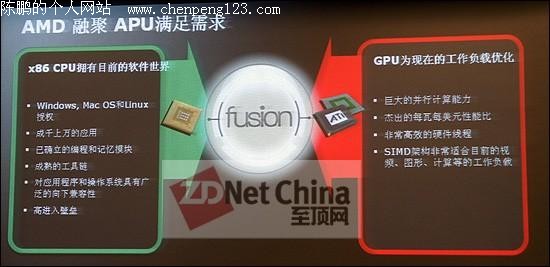 AMD的APU战略构想,以CPU为基础,融合进GPU巨大的并行计算能力,从而满足未来的紧凑、小巧、低功耗、高性能的用户需求
