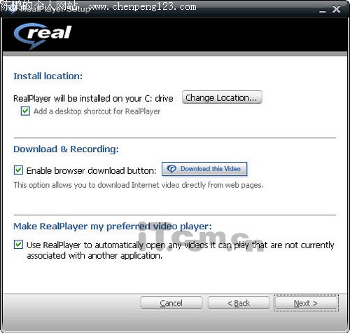 RealPlayer 11的安装包为13.2MB,跟以前版本相比体积没有什么太大变化。安装过程中增加了是否在在线视频中显示悬浮的视频下载按钮(图1),这样在线浏览流媒体的时候,可以将所观看的视频直接下载到本地硬盘当中。安装完RealPlayer 11,需要重启电脑才能够正常使用(图2)。
