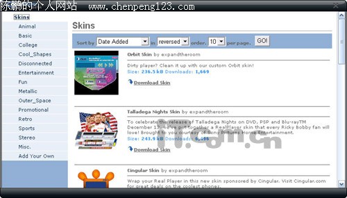 提供换肤功能 如果你不喜欢RealPlayer 11的外观也没有关系,在RealPlayer 11中提供了换肤功能,可以选择自己喜欢的外观(图6)。