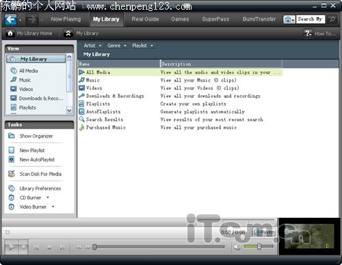 在播放影片的同时,切换到了RealPlayer媒体库,在RealPlayer11右下角会显示正在播放的视频缩略窗口(图15)。