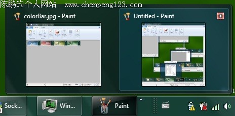 这个预览从windows vista时代就有了,但是,绝对没这么酷,为什么呢?我这里打开的是两个mspaint,如果打开的是一个IE8,有2个Tab页,那么这里就会分别显示两个tab了,想看哪个?点之即可~