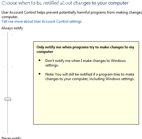 如果说vista不好用,最大的一个原因就是UAC的问题了,windows 7的这个设计可以供用户选择UAC提示的频度,这个太方便了!
