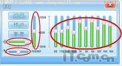 (四)使用EQ功能还可以对使用的电脑音响系统和耳塞等硬件配置的不同,进行有针对性的调节,这样可以大幅度提升音频播放的质量,让你体验到良好的视听效果。