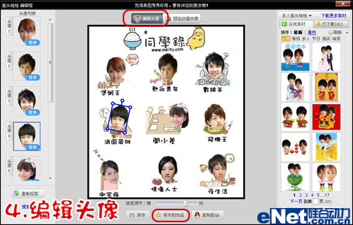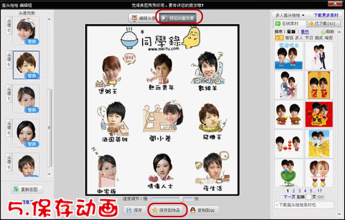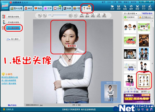 1、用美图秀秀打开一张照片,点击"娃娃"-- "多人摇头娃娃"菜单,选择同学录模板,然后抠出人物头像。