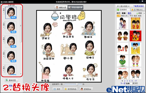 2、头像抠完后会出现摇头娃娃编辑框,然后就可以把同学们的照片一次替换啦。只要点击"替换"图标就可以打开电脑中的其他照片,开始替换头像吧。