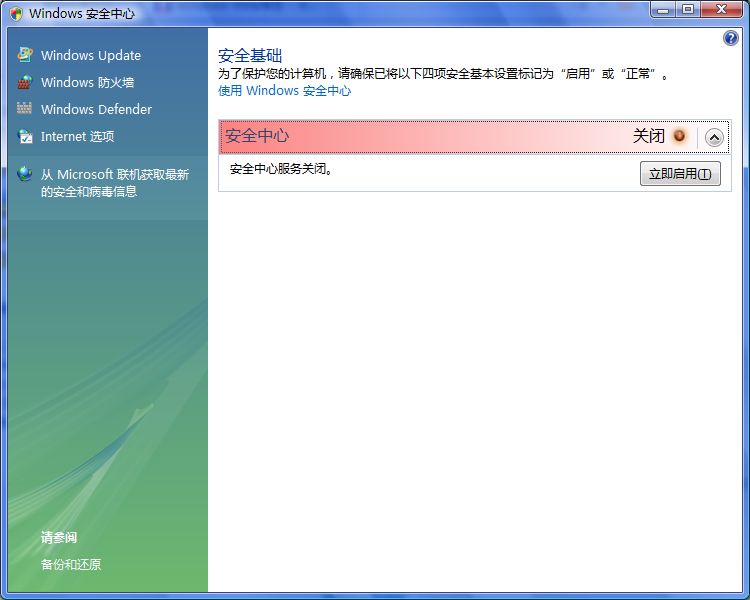 安全中心服务无法启动了。熊猫烧香对这里起了一下影响,其它无任何影响,安全中心下的防火墙、Windows Defender、自动更新都运作正常
