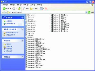 这些声音实际上都是保存在硬盘里的单个wav文件,虽然这些声音文件可以保存在任何驱动器的任意地方,但默认条件下它们都在“C:WindowsMedia”文件夹下(见图3)。当你安装某个新的应用程序时,它也会装入一些新的声音文件。如果你仔细查看“程序事件”清单,就会找到那些安装过的文件。但一般情况下,这些程序会把声音文件装在自己的文件夹中,而不是放在“C:WindowsMedia”下。这样可以防止应用程序误将其它程序的声音覆盖掉。点击某个已安装文件的声音,即可在“声音”对话框中看到文件的路径。