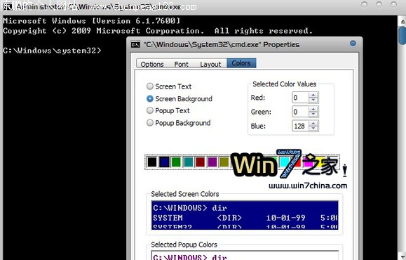 对于稍微资深一点的用户而言,CMD,也就是命令提示符是个非常常用的功能,无论是在XP、Vista还是Windows 7下,很多优化和设置操作都离不开它,下面就是有关Windows Vista和Windows 7下针对命令提示符本身的一些小技巧。 1. 自定义命令提示符的颜色 默认状况下,命令提示符是黑底白字显示的,要更改这两者的颜色其实非常简单,点击左上角的黑色小图标 - 属性。然后在颜色选项卡中选择自己合适的颜色即可。同时可以自定义的还有字体、窗口布局等等。