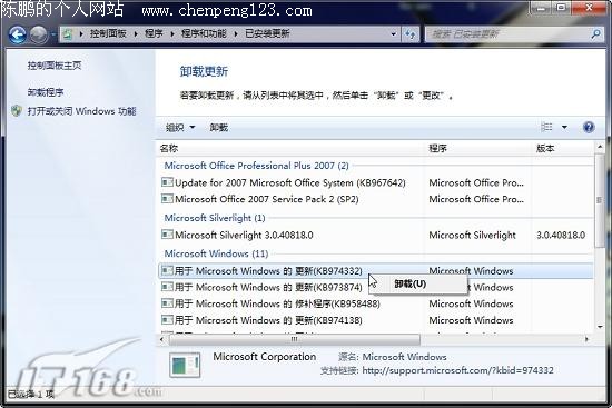 对于曾经安装过的更新历史,我们也可以随时进行查询,如果某些更新并不适合你的需求或者影响了你的系统,可以“已安装的更新”的面板里进行删除。