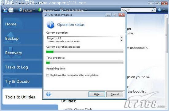 使用Acronis True Image Home 2010制作的一键还原系统具有安全性高,备份还原速度快的优点,因此,非常适合操作能力高的用户使用。不过,需要注意的是卸载软件前记得要将隐藏分区恢复回来,否则将导致分区容量丢失的现象。