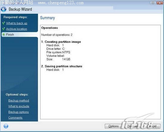 需要在“File name”处输入备份文件名才能完成,回到刚才的窗口,点击“Next”按钮;在接着的窗口点击“Proceed”按钮即可执行完成了(如图14),备份过程持续了6分钟,速度很快。