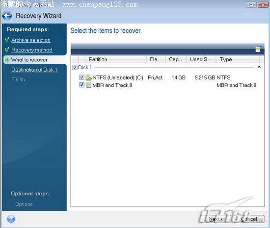 这时,在出现的窗口选择恢复的源分区和MBR(主引导扇区),点击“Next”按钮(如图18)。