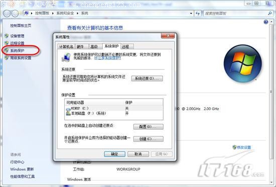 如同在Windows XP系统中一样,使用系统还原功能前,先确认Windows 7是否开启了该功能。在资源管理器的“计算机”页面(也就是Windows XP中的“我的电脑”)空白处点击鼠标右键,选择“属性”,然后在“系统”查看窗口中点击界面左侧的“系统保护”链接,最后在“系统保护”选项页中确保所要保护的驱动器出去打开保护的状态。