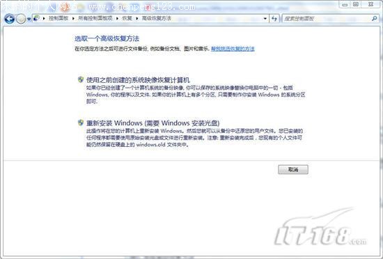 创建的系统映像不仅仅可以如上使用,还可以在系统完全无法启动时,插入Windows 7安装盘,通过安装盘的修复功能,使用映像进行还原,使得系统恢复到备份的状态,就如同使用Ghost一样。