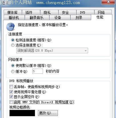 运行WMP 12,单击“工具 → 选项”,在弹出的对话框中切换到“性能”标签,取消程序默认勾选的“启用WMV文件的DirectX视频加速”,最后保存设置退出,将视频加速关闭,这样就可以有效降低播放影音文件时对CPU的使用率。