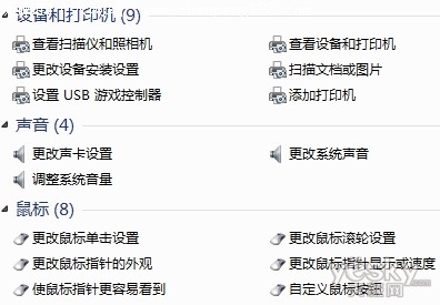 类似的设置还有“Internet选项”中的“更改在选项卡中显示网页的方式”、“提示网站上是否有可用的RSS源”;“程序和功能”中的“查看已安装的更新”、“卸载程序”;“设备和打印机”中的“扫描文档或图片”;“鼠标”中的“自定义鼠标按钮”等等(如图2所示)。