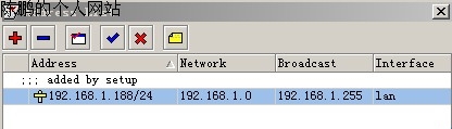 图13 在“IP——address”中,我们可以看到刚才配置的IP地址。由于刚才我们只配置了一块有于内网的网卡,所以列表中只有一个内网的IP(图14)。