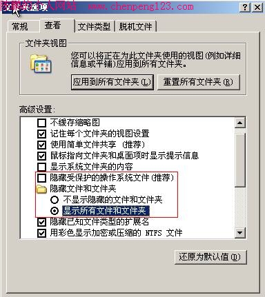 1、由于灰鸽子的文件本身具有隐藏属性,因此要设置Windows显示所有文件。打开“我的电脑”,选择菜单“工具”—》“文件夹选项”,点击“查看”,取消“隐藏受保护的操作系统文件”前的对勾,并在“隐藏文件和文件夹”项中选择“显示所有文件和文件夹”,然后点击“确定”。