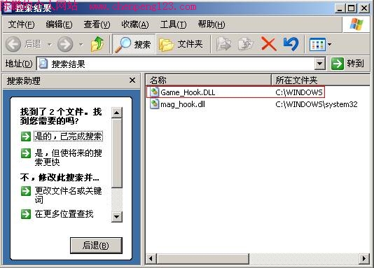 3、经过搜索,我们在Windows目录(不包含子目录)下发现了一个名为Game_Hook.dll的文件。