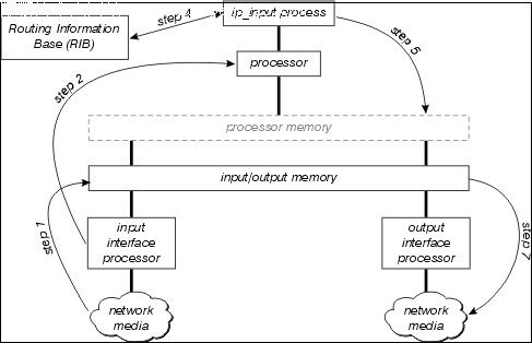 前言 有过多交换路径可用对多种Cisco路由器和Cisco IOS版本。最 佳一个如何是哪些为您的网络和他们全部工作?此白皮书是 企图解释以下交换路径中的每一条因此您能做出最佳的决策关于哪 条交换路径适合您的网络。 首先,检 查转发进程。有三个步骤到转发信息包通过路由器: 确定信息包目的地是否是可及的。 确定下一跳往目的地和接口该下一 跳是可及的。 重写媒体访问控制 (MAC)头在信息包因此将成功地到达其下一跳。 这些步骤中的每一个是重要为了信息包能到达其目的 地。 注意: 在本 文过程中,我们使用IP交换路径例如; 实际上如果他们存在 ,这里被提供的所有信息是可适用的到等同的交换路径为其他协议 。 流程转换 流程转换是小公分母在 交换路径; 它为每通信类型是可用的在每个IOS版本,在每 个平台和交换式。流程转换是由二个重要概念定义的: 转发决策和信息在信息包曾经重写 MAC 报头从包含MAC报头信息被映射到每台主机IP 地址直接地连 接到路由器的一些其他表被采取从路由表(从路由信息库或者RIB)和 地址解析协议(ARP)高速缓冲存储器,或者。 信息包由运行在IOS的之内一个正常进程转换。 换句话说,转发决策由通过IOS调度程序和运行被安排的进程 做作为一个对等体到其他进程在路由器,例如路由协议。 在 路由器正常运行没有中断的进程过程交换信息包。 下面的图说明流程转换路径: