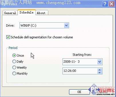 定时整理:为了方便起见,Defraggler 提供了实用的计划任务功能,可以自由指挥软件在某时间点你整理系统。依次执行“Settings-Options”进入设置对话框,随后点击“Schedule”标签进入计划任务界面(图2)。在这儿可以为每个逻辑分区自由设定某个整理的时间点,每次、每天、每周或每月的某个时间。