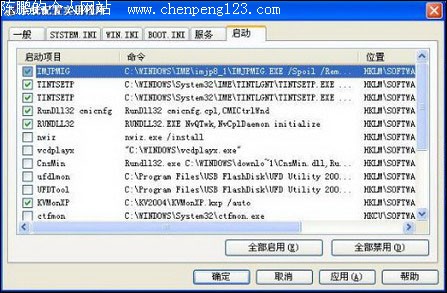 二、开始→运行,输入msconfig→确定。在打开的系统系统配置程序里,将一些不重要的服务以及启动程序关闭,重启电脑。