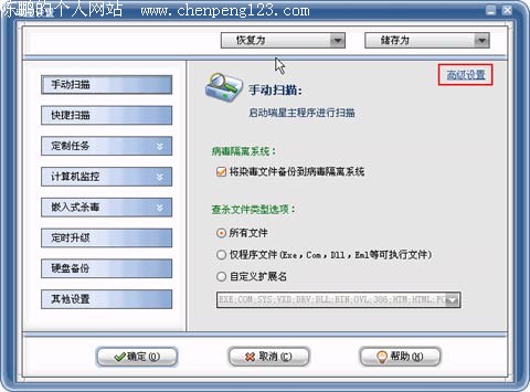 瑞星2005不少用户已经提前使用上了,但是很多人没有给它进行优化,而我所谓的优化只是对瑞星2005的设置进行适当的调整,没有什么难度但是希望对大家的瑞星之旅有所帮助! 在主界面,点击“详细设置”-“手动设置”-右上角的“高级设置”
