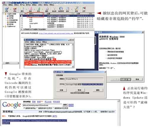 网络钓鱼(Phishing),并不是一种新的入侵方法,但是它的危害范围却在逐渐扩大,并成为近期威胁网络安全的最大危害之一。你了解Phishing吗?与传统的入侵方式相比,它有什么显著特点呢?典型的Phishing案例有哪些?如何防范被Phishing呢? 南方的早春总是伴着绵绵细雨,难得今天是个晴朗天,某服装公司的张经理带着十几个重要员工来到郊外一个鱼塘进行垂钓活动。张经理放置好钓具后,便打开了随身携带的笔记本电脑并连上网络,他想利用这点时间处理一下最近的一笔生意。秘书见他在这种时候还离不开工作,便劝他:“经理,今天是游玩的日子,难得放松一下,今天还是不要处理公司业务了吧……您不怕钓竿被鱼叼走了?”张经理对秘书笑了笑,看着身前的钓竿缓缓说道:“都说姜太公钓鱼,愿者上钩,但是如果不知道提竿的时机,即将到手的鱼也会溜走的。等这笔生意谈妥,我再休息也不迟。”说罢又继续低头敲键盘。 生意终于谈妥,客户把货款转入张经理的银行账户,张经理笑了:“这条大鱼终于被我钓到了。”然后他登上网络银行账户查看转账情况。当页面上显示出账户剩余金额时,张经理心里一紧,接着有了晕眩的感觉:账户里原来的存款不翼而飞,页面里惟有客户刚刚转入的货款,仿佛在嘲笑着张经理。 张经理做梦也没想到,这一次,他成了别人钓上的鱼,而且是大鱼。 释疑网络钓鱼 网络钓鱼(Phishing),并不是一种新的入侵方法,但是它的危害范围却在逐渐扩大,成为近期最严重的网络威胁之一。Phishing就是指入侵者通过处心积虑的技术手段伪造出一些以假乱真的网站和诱惑受害者根据指定方法操作的email等方法,使得受害者“自愿”交出重要信息或被窃取重要信息(例如银行账户密码)的手段。入侵者并不需要主动攻击,他只需要静静等候这些钓竿的反应并提起一条又一条鱼就可以了,就好像是“姜太公钓鱼,愿者上钩”。 看到这里,有些读者可能会说,这不是社会工程学吗?两者都是骗人的手段啊。不错,网络钓鱼里面的确有社会工程学的影子,但是与后者相比,网络钓鱼更趋向于技术方面,因为它不仅仅是欺骗,里面还必须掺入技术成分,否则如果连“垂钓者”自己都无法控制“钓竿”的话,又怎么可能钓到鱼呢? 视觉陷阱:网页背后的钓竿 警察正在分析张经理那台笔记本电脑硬盘里的数据,张经理本人在报案时因心脏病发作而住进了医院。由于无法得知张经理最后一次登录网络银行的时间,而且系统里也没有感染任何偷盗账号的后门程序,案件变得有点扑朔迷离起来。一个分析员无意中打开了Foxmail,发现最后一封信件是银行发送的,主题为“XX网络银行关于加强账户安全的通告”,分析员预测案件与这封信件有重大关系,马上打开阅读。这是一封HTML网页模板的信件,内容大意为银行为了加强账户安全而升级了系统,请各位客户尽快重新设置账户密码,末尾还给出了设置密码的URL链接。 幕后黑手果然在这里!分析员马上查看信件源代码,很快就找出了其中的猫腻:正如常说的 “说的一套,做的一套”,这个邮件的作者采用了“看的一套,进的一套”这种简单的欺骗手法,入侵者利用HTML语言里URL标记的特性,把它写成了这样:“〈A HREF="http://www.xxxbank.com.cn/account/index.asp"〉http://www.xxbank.com.cn/account/index.asp〈/A〉”,由于心理作用,受害者潜意识里都会直接点击那个写着“http://www.xxbank.com.cn/account/index.asp”的URL链接,然而他们并不知道,这个点击实际上是把他们引向“http://www.xxxbank.com.cn/account/index.asp”这条钓竿!而这个所谓的更改密码页面,当然伪造得与真正的银行页面完全一致,但是它的“更改密码”功能却是把账号和密码发送到了幕后的“垂钓者”手上,然后“垂钓者”登录上真正的网络银行改了受害者设置的密码,并顺手牵羊把银行账户里的存款转移掉。这样钓来的鱼,即使是小鱼也会让“垂钓者”在梦里发出笑声来了,即使一条太小,积累起来的数目也会变得相当可观了。在金钱的诱惑下,“垂钓者”一次又一次提竿,殊不知,他自己也是被金钱钓竿钓上的一条鱼。