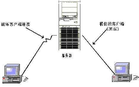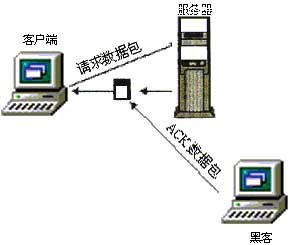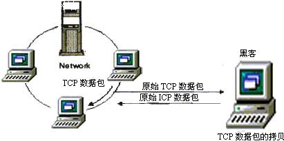 二、TCP协议劫持入侵 也许对连接于Internet的服务器的最大威胁是TCP劫持入侵(即我们所知的主功嗅探),尽管顺序号预测法入侵和TCP劫持法有许多相似之处,但TCP劫持之不同在于黑客将强迫网络接受其IP地址为一个可信网址来获得访问,而不是不停地猜IP地址直至正确。TCP劫持法的基本思想是,黑客控制了一台连接于入侵目标网的计算机,然后从网上断开以让网络服务器误以为黑客是实际的客户端。图3显示了一个黑客怎样操作一个TCP劫持入侵。