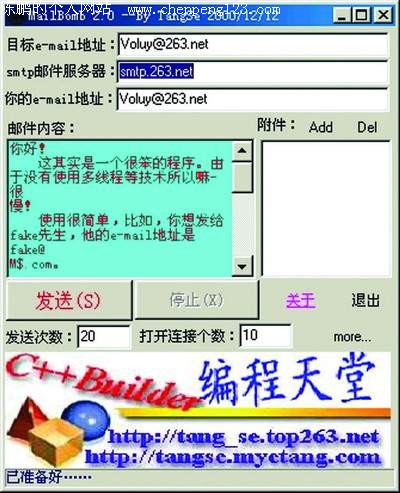 CGSiOOBMessageGFPGen是一款专门进行OOB攻击的工具,可以对单一的地址进行攻击,也可以攻击多个主机,只要在IP/MachineName中输入主机IP地址或主机名,选择目标主机开放的端口,按“Kill”即可攻击某一主机;要攻击多个主机,点击“AddtoMulti-Kill”把要攻击的主机依次添加到“Multi-KillList”列表中,按下“Kill All Now”可以对列表中的所有主机攻击一次;循环攻击则可选择“Repeat Kill”,会弹出选择提示选择次数,选好后按确定即可实施攻击。如果安装有CGSiPortSniffer,还可以用菜单File中的OpenPortSniffer激活端口嗅探器。