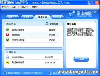 1.主动实时升级有什么好处? 一般杀毒软件仅提供定时升级和手动升级的功能,采用这两种解决方法,往往因为用户忘记升级杀毒软件,而被不断出现的新病毒感染。金山毒霸2005率先提供主动实时升级功能,只要接入互联网,程序就会自动完成程序和病毒库的更新,确保任何时侯都拥有对新病毒的清除能力。