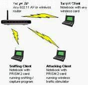 Target所使用的无线网卡与芯片无关,只要是基于802.11b,任意厂家的产品都可满足要求。而Attack与Sniff两台机器是使用的两块基于PRISM芯片的802.11b的无线网卡。尽管我们在以后的操作中中使用的很多工具(如Kismet)都可支持相当多种类的无线网卡,但笔者还是建议使用基于PRISM 2芯片的网卡,因为这种芯片能够被我们在破解过程所要使用到的所有工具都支持。