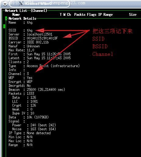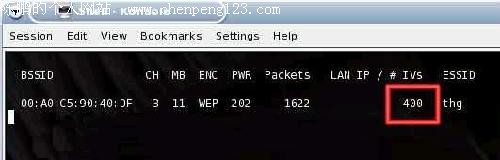 在这儿,我们对Packet 的值不感兴趣,因为它并不能够有助于破解WEP,IV 值则是个很重要的数字,因为如果要破解一个64bit的WEP密钥,需要捕获大约50000到200000个IV,而破解一个128bit的WEP密钥,则需要大约200000到700000个IV。