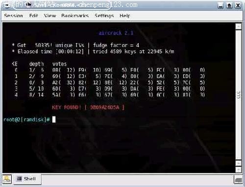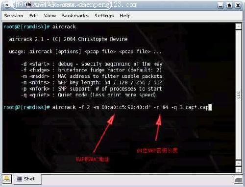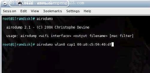 把THECHANNELNUM替换成目标WLAN的频道数,如果在这个区域内有多个WAP,把目标AP的MAC地址添加到airodump的尾部作为参数,如:airodump wlan0 cap1 MACADDRESSOFAP。随着Airodump把IV写进一个文件中,我们可同时运行Aircrack来寻找包含在这个文件中的这个WEP密钥,让Airodump继续运行,打开另外一个shell窗口,在这个新的命令窗口中输入如下的命令来启动Aircrack。