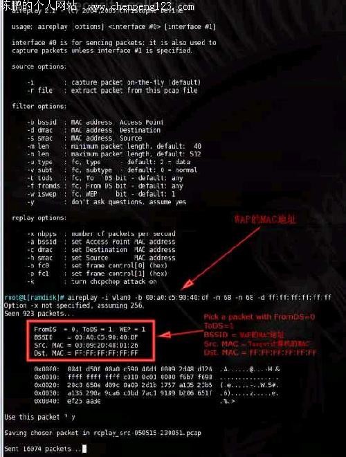 Aireplay捕获了相关的数据包后会并询问是否与你所希望得到的相匹配,在本次破解中,我们需要捕获的数据包具有以下特征: