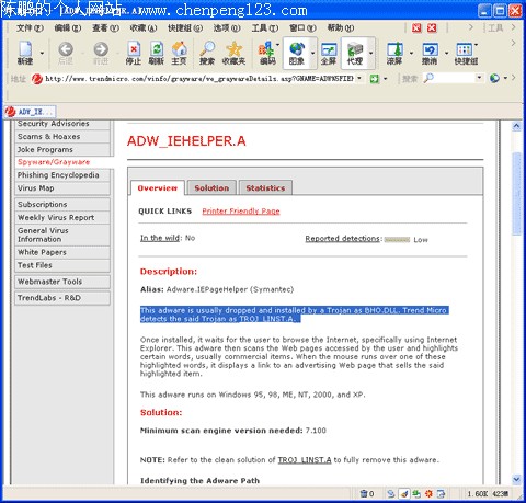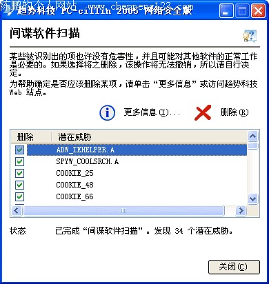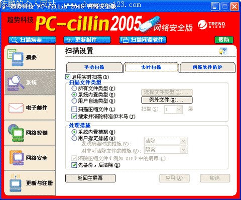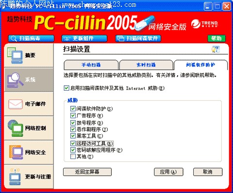 终于放假了,想着将近2个月的时间可以无忧无虑的上网冲浪并且体验一番心仪许久的网游,实在是令人惬意的事情。这不,才放假第一天就兴冲冲的拿着移动硬盘去同学家拷贝一些游戏,但是打开他的计算机之后...... “哎呀,计算机中的病毒库还是去年的,这怎么行呢?” “这有什么关系啊?反正我就是上网浏览,顺便玩一些网游而已,也有关系嘛?” “你还不知道啊?现在各种木马程序、间谍软件漫天都是,一个不小心就会让你的机器完蛋!” 虽然同学的计算机还可以正常运行,不过硬盘中肯定也隐藏了一些木马程序和间谍软件。好在木马可以通过网络防火墙拦截,所以就把重点放在解决间谍软件方面,这样不仅可以让同学也有一个良好的上网环境,还能够防止一起网游的时候出现盗号情况。 一、何为间谍软件? 可能包括我同学在内的很多朋友都会有这样的疑问:间谍软件有什么可怕的?最多我安装一个网络防火墙不就可以阻止了吗?其实许多潜在的Internet威胁并不是我们常见的病毒或者木马程序,而是一些危及个人隐私安全或者是对计算机进行骚扰的应用程序,其中间谍软件就能够监视我们使用计算机的习惯以及个人信息,然后将这些信息在未经许可的情况下发送出去,比如我们访问的Web站点、按键记录或者屏幕快照等等信息都会在你不知不觉中泄漏出去。 虽然我们可以安装网络防火墙加以防护,但是对于间谍软件而言效果并不明显。比如我们安装Kazaa这款P2P软件之后就会附带安装一些广告软件,除非你在防火墙中设定禁止Kazaa访问Internet的权限,否则与Kazaa捆绑集成的广告软件就有可能将个人信息发送给第三方。而且目前还有很多网站采用默认安装ActiveX控件的方式让你浏览网页时候被强行安装了间谍软件,可见仅仅通过防火墙的拦截作用并不能有效的阻止间谍软件泄密。 二、用PC-cillin2005清理间谍软件 趋势科技PC-Cillin2005网络安全版,是一款综合性的入门级网络安全产品,它包含了丰富的产品特性,不仅能够保护个人单机应用环境,而且能够扩展到对家庭/SOHO小型网络的有效防护。并PC-cillin2005内嵌的增强的“间谍程序清除系统”功能可以主动检查发现并有效去除各种间谍程序、广告软件、Cookies等。 运行PC-cillin2005之后,首先在程序主窗口中通过“系统->安全检查”命令激活安全漏洞检测窗口,点击“检查”按钮之后程序将连接到微软官方网站进行检测,一旦有漏洞则会列表显示出来(附图1)。为了能够彻底抵御间谍软件的侵袭,建议大家事先在这里进行Windows漏洞的修复,这对于提升计算机的安全级别可是大有裨益的。完成这一步之后,我们就可以借助PC-cillin2005来扫描并清理间谍软件了。