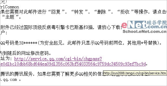 >>六位QQ免费送? 别做梦了! >>免费刷Q币?Q币到底给了谁! 习惯性的打开邮箱,不料收到一封腾迅系统发送的找回密码的信件,这一看心里着急呀,要知道像我这样的老网虫丢了QQ就丢了大半条命。可是转念一想自己QQ还登陆着,而且也没有去“找回密码”过呀,难道这又是一个盗号者的伎俩? 看一下发件人,没错,确实是腾迅找回密码时的发件人地址,这是怎么回事呢?