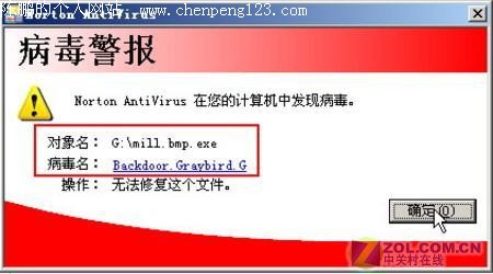 现在的牧“马”者是越来越狡猾,他们常用文件捆绑的方法,将木马捆绑到图像、纯文本等常见的文件中,然后通过QQ、Email或MSN等将这些文件传送给受害者,而一旦不慎打开这些文件,你就“中招”了(当然是木马了)。那对付这些捆绑木马有哪些通用规则值得我们平时注意的? 第一招:常用杀毒软件 这是最安全、最经典的防御方法了,特别是对通过QQ、MSN等即时通讯工具传送过来的文件,在打开他们之前一定要用杀毒软件查毒。对于一些常见的木马,只要升级到最新病毒库,一般均可以查杀。如笔者的Norton 2002就对mill.bmp这个文件给出染毒提示,如图1所示。