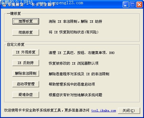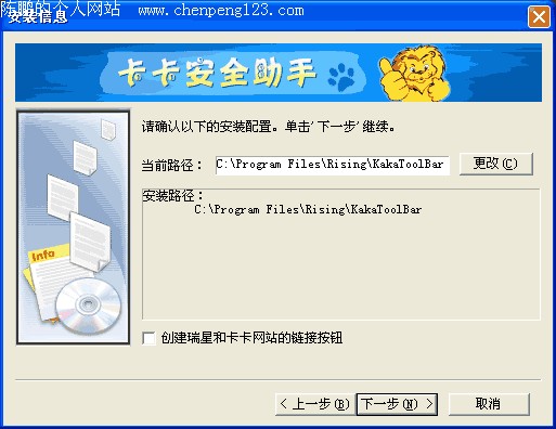 卡卡安全助手是瑞星公司精心打造的一款网络安全软件,是国内第一款由专业厂商发布的免费安全工具。卡卡安全助手囊括智能广告拦截、系统修复、插件管理、插件免疫、系统清理、病毒疫情实时监测、信息搜索、病毒资料搜索、免费在线查毒等诸多功能。它属于“绿色安全”软件,安装后不会产生垃圾文件,安装、使用简单便捷。卡卡安全助手是您上网冲浪必备的安全伙伴。 卡卡安全助手支持以下操作系统: Windows98/Me/NT/2000/XP 系统。 支持浏览器: Microsoft Internet Explorer 5.0 以上版本。 安装与卸载 安装 1. 访问 http://tool.ikaka.com 并单击网页右方的“我要下载”按钮。 2. 当您看到“文件下载”屏幕时,选择“打开”(或“运行”)。 3. 安装过程中您需要阅读“卡卡安全助手安装协议”并选择“同意”才能进行下一步操作。 4. 在安装过程中会提示已经安装的插件,您可以在这里禁用或清理不想要的插件。具体请参考本说明中的“插件管理”部分。