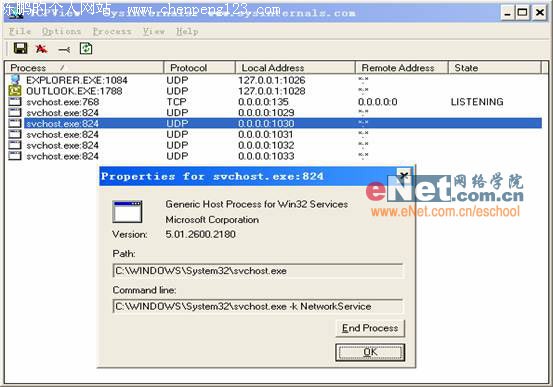 如今木马数量众多、防不胜防,只要你能上网,就可能中弹落“马”,由于许多杀毒软件不能查杀木马,因此很多人中了木马之后,还全然不知呢!直到有一天你的网游帐号、装备丢失了,网银存款被盗了,才知道是木马所为。因此掌握手工查杀木马的技巧,是网上生活必备的技能,你可以用下面的方法来手工查杀木马: 一、检查木马的方法 1、启动任务管理器 按Ctrl+Alt+Del键启动任务管理器,点击“进程”选项卡,查看其中是否有陌生进程,记录下来,暂时别动它。 2、检查本机端口 启动一个命令提示符窗口,键入netstat -an 看看是否有异常端口,建议使用TCPView(下载地址http://xj-http.skycn.net:8080/down/tcpview.zip)、或者Active Ports(下载地址http://www.ttxx.com/download.asp?id=9213&downid=3)来查看端口与进程的关系(如下图),找出使用异常端口的进程,记录下来。