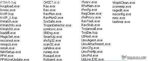 5.病毒利用映像劫持的技术,使众多安全软件不可使用,只要以下有列出来的文件名,当病毒监测到时,就会自行关闭。看看,还有哪个病毒劫持的安全软件比它多。(如图)