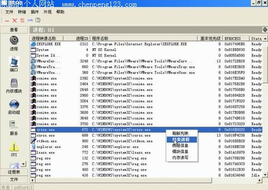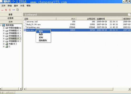 1.解压IceSword122cn.zip把Icesword.exe改名为1.com(使用AV终结者专杀后,可不用修改,既能运行)运行 切换到进程窗口,结束%system32%\crsss.exe进程 (注意是crsss.exe不是csrss.exe,一定不要搞错)