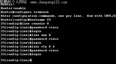 小提示:其中“Line vty 0 4”表示开启五个虚拟接口,说明同时可以有五个用户Telnet到这台路由器。