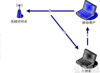 由上图可以看出,攻克WEP是一个相对简单的过程。其中,1表示:攻击者发送一个伪造的数据包给合法的移动用户。2表示:移动工作站用WEP对数据包加密并将它转发给访问点。3表示:攻击者截获加密的数据包并将它与最初的数据包相比较,从而得到加密密钥。