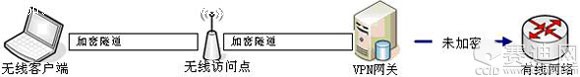 上图表明:VPN为无线通信提供了一个安全的加密隧道。