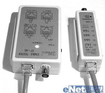 随着网络应用的日益广泛,网络故障的检测对解决网络故障就显得非常重要。如何利用最简单的工具来检测网络由于线缆、连接设备产生的故障呢?这里给大家介绍几种实用网络故障检测方法。 以万用表为检测工具 万用表是检测网络传输介质双绞线是否正常导通的基本工具,也是最常用、最得力的工具。利用万用表的欧姆档,能测试出网络中单个导线(一条芯线的两端)是否连通(读到的欧姆值较小且接近0,表明测量的两端导通,读到的欧姆值较大且接近无穷大,表明测量的两端不导通,同一根线的两端应该是导通的),可以得知一端接头的几号引脚与导线另一端接头的几号引脚相对应,但此方法不能测出信号经过导线的衰减情况。 LAN电缆测试器 电缆测试器是一种比较便宜的专用网络测试工具,价格在100元左右/套。通常电缆测试器有两个部分组成:一个是主测试器(如图1左边所示),另一个是远程测试端(如图1右边所示),主测试器或远程测试端上有一组指示灯(有的电缆测试器主测试器和远程测试端各有一组指示灯)、RJ-45接头的插口、BNC接头的插口。检测时将LAN电缆两端的接头插入对应的插口中(如图1所示,UTP5 LAN电缆的RJ-45接头放入电缆测试器的RJ-45的插座中),打开电缆测试器电源,当网络传输介质LAN电缆导通正常时,主测试器或远程测试端上的对应指示灯发亮(如图1中右边的1&2、3&6、4&5、7&8指示灯会依次发亮),表明LAN电缆导通正常,如果主测试器或远程测试端上的对应指示灯有不发亮的存在,则表明LAN电缆导通有问题。电缆测试器的部分功能也可以用万用表来模拟,但在检测LAN网线时,比万用表好用多了。
