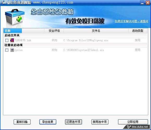 金山系统急救箱可以访问http://bbs.duba.net/thread-21988813-1-1.html下载