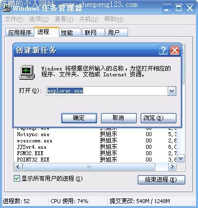 这两天一个会锁定IE首页为“7939上网导航”的病毒在互联网上肆虐,我们发现已有数千网友感染此病毒。许多网友在尝试使用注册表和IE修复工具无效后都不得已格式化计算机重新安装了系统。其实,这个病毒清除起来并不复杂,下面就简要介绍一下如何手工和使用杀毒软件清除该病毒。 第一步:清除内存中的病毒 在任务管理器中找到名为“Realplayer.exe”和“Explorer.exe”的进程,单击鼠标右键,选择“结束进程”。 “Explore.exe”进程被结束后将会看不到桌面图标和任务栏,这时按住Ctrl+Alt+Del键,启动任务管理器,点击菜单“文件→新建任务(运行)”,输入“explorer.exe”,点击“确定”(见图1)。