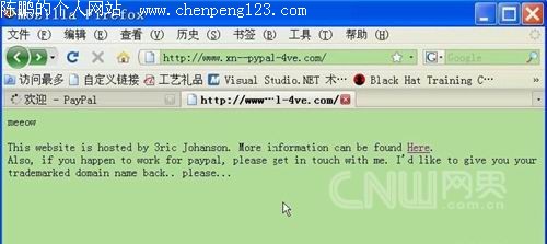 攻击者为了达到攻击目的,他们在网络链接方面可谓下足了功夫:为了诱使用户单击链接,想方设法让这些链接看上去一点问题都没有,然而,只要用户一点击就被带进阴沟里——恶意软件站点或者钓鱼站点。为此,他们想到了把原装URL中的英文字符替换为其它语言集(例如古代斯拉夫语)中的同形字符,这样,这些URL的外观在浏览器中根本看不出有什么变化——这就是本文所要介绍的同形词攻击技术。 虽然这不是一种新颖的攻击手法,但是可以肯定的是,到目前为止大部分web用户对它还是非常陌生的,甚至一些安全专业人员也是如此。 正是由于这个原因,所以本文将通过一种通俗易懂的方式来向广大读者介绍同形词攻击技术到底是怎么回事。 为了让读者对同形词攻击有一个直观的认识,下面他们用一个简单的示例来进行演示。例如,您能说出а和a的区别在哪里吗?第一字母是古代斯拉夫语的小写字母а,第二个字母是拉丁文小写字母a。在浏览器中,它们看上去一模一样,但实际上它们是不同的两个字符。小写字母a只是众多可被用于这种攻击类型的字符之一。 现在,请您仔细观察下面的两个URL,您能从外观上看出有什么区别吗? www.paypal.com 和 www.pаypal.com 它们看上去是不是像是从一个模子里刻出来的,即便您将它们粘贴到地址栏的话,它们看上去也极为相似。但是,按回车键后,它们却将您带到两个截然不同的站点,一个去往PayPal,如下所示: